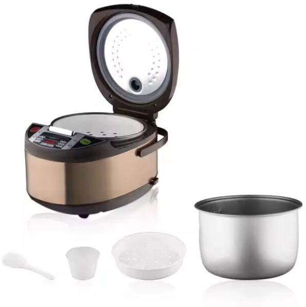 Elektromos gőzfőző, RAF R167, 700 W, 5 literes kapacitás, rozsdamentes acél, 37x27x22 cm, barna színűA RAF R167 elektromos gőzfőzővel a főzés egyszerűbbé és egészségesebbé válik. A rizsfőzés könnyed rutinná válik, a párolt zöldségek pedig megőrzik textúrájukat, színüket és alapvető tápanyagaikat. Ez az edény tökéletes partner mindazoknak, akik kiegyensúlyozott életmódot szeretnének folytatni, miközben időt takarítanak meg a konyhában. Fedezze fel az egészséges főzés örömét, és élvezzen minden ételt a RAF R167 elektromos gőzfőzővel - a hasznosság, a design és a teljesítmény tökéletes kombinációja!Élvezze az egészséges és ízletes ételeket a RAF R167 elektromos gőzfőzővel! A tökéletes rizs és friss zöldségek főzéséhez ideális edény az elegáns dizájnt és a modern funkcionalitást ötvözi, így minden konyha elengedhetetlen kelléke. Tulajdonságok: Optimális 700 W-os teljesítmény: Egyenletes és hatékony főzést biztosít, megőrizve az ételek tápanyagtartalmát. Nagy, 5 literes kapacitás: Tökéletes a bőséges adagok főzéséhez a család vagy különleges események számára. Minőségi rozsdamentes acél anyag: Erős, tartós és könnyen tisztítható, modern és stílusos megjelenést biztosít. Kompakt és ergonomikus kialakítás: Méretei: 37x27x22cm, ideális a helytakarékossághoz a konyhában. Főzési sokoldalúság : Tökéletes rizshez, zöldségekhez, halhoz vagy más párolt ételekhez. Elegáns barna szín: Harmonikusan illeszkedik bármilyen berendezéshez, meleg és stílusos hangulatot kölcsönözve konyhájának. Specifikációk: A tálalóedényt az alábbi jellemzőkkel látja el: - Tálalóedény, amely a tálaláshoz szükséges felszerelést tartalmazza: Teljesítmény: 700 WNévleges feszültség: 220 V Névleges frekvencia: 60 Hz Kapacitás: 5 liter Méret: 37x27x22 cm Szín: barna Kijelző: Digitális